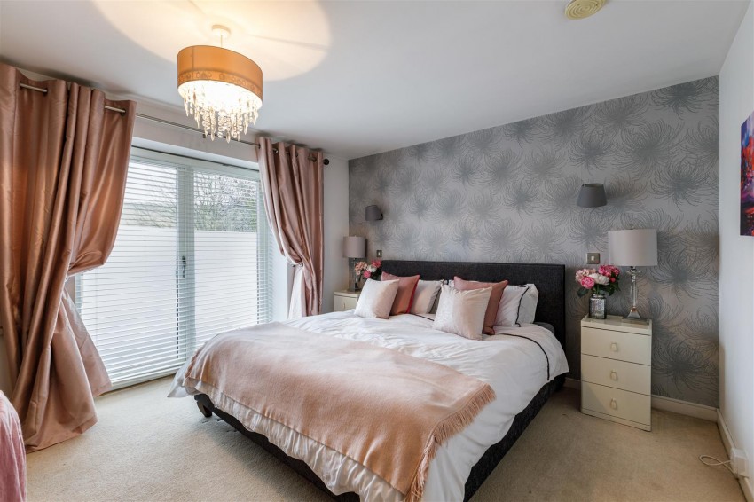 The property is entered at ground level via a multi-locking front door into a spacious hallway. To the ground floor there are three generous double bedrooms, with the principal bedroom benefitting from a dressing area and sumptuous en-suite. There is also a well-proportioned family bathroom and utility cupboard. The solid wood staircase leads you effortlessly to the heart of the home - a magnificent open-plan living space on the first floor. Here, the modern kitchen, lounge area, and dining space seamlessly merge, creating an ideal setting for relaxation and entertainment. The south facing floor-to-ceiling windows and bi-fold doors flood the room with natural light, illuminating every corner and offering picturesque views of the surrounding countryside. Step through the bi-fold doors onto the glass veranda, where you can enjoy al fresco dining or simply unwind while soaking in the tranquil atmosphere. There is a cosy family room, ideal for movie nights and a breakout space for the family. There is also a handy cloakroom for convenience.